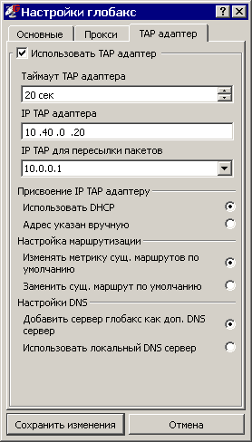 настроенные на использование прокси. Обратите внимание: при отключенном TAP-адаптере в клиенте Globax не отображаются тариф и баланс пользователя (возникает ошибка с кодом 99).